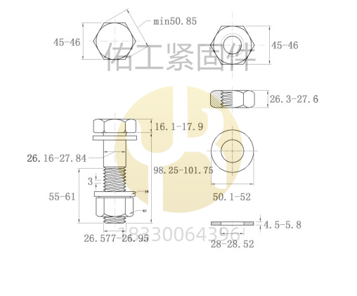 GB1228-1230鋼結構大六角螺栓10.9S部分規格及尺寸